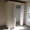 Caption : Kitchen with Dining Room Door to Left and Pantry to Right. A refrigerator will be added to the space to the right of the Pantry.